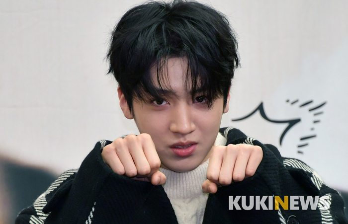 펜타곤 우석이 3일 오후 서울 월드컵북로 스탠포드호텔에서 열린 tvN 새 예능 ‘냐옹은 페이크다’ 제작발표회에서 포즈를 취하고 있다.