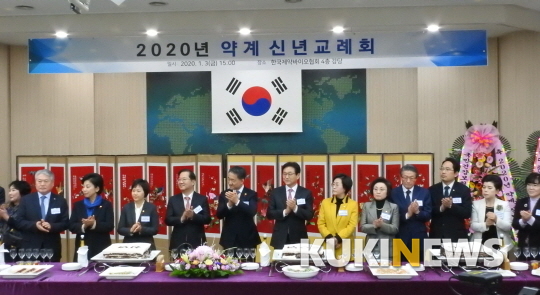 3일 오후 서울 서초구 한국제약바이오협회 4층 강당에서 열린 ’2020년 약계 신년교례회‘에서는 원희목 한국제약바이오협회장, 김대업 대한약사회장 등 약계 인사와 박능후 보건복지부 장관, 김용익 건강보험공단 이사장 등 정부 측 인사, 더불어민주당 김상희, 남인순 의원, 대안신당 장정숙 의원 등이 참석해 미래 먹거리 산업인 제약·바이오 산업에 힘을 실어줘야 한다고 한목소리를 냈다.