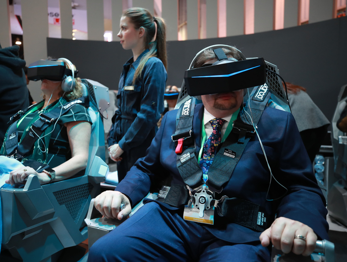 세계 최대 가전·정보기술(IT) 전시회 'CES(Consumer Electronics Show) 2020'가 개막한 7일(현지시간) 미국 네바다주 라스베이거스 컨벤션센터 현대자동차 부스에서 관람객들이 개인용 비행체(PAV) 콘셉트 'S-A1'을 VR로 체험하고 있다.