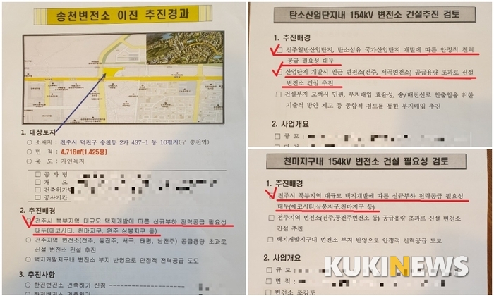반면에 송천동변전소는 에코시티, 천마지구, 완주삼봉지구 등 전주시 북부지역 대규모 택지개발에 따른 부족한 전력 공급을 위해 계획됐고 천마지구내 변전소 추진 배경과 일치해 이전 완료가 아니라는 주장이다.