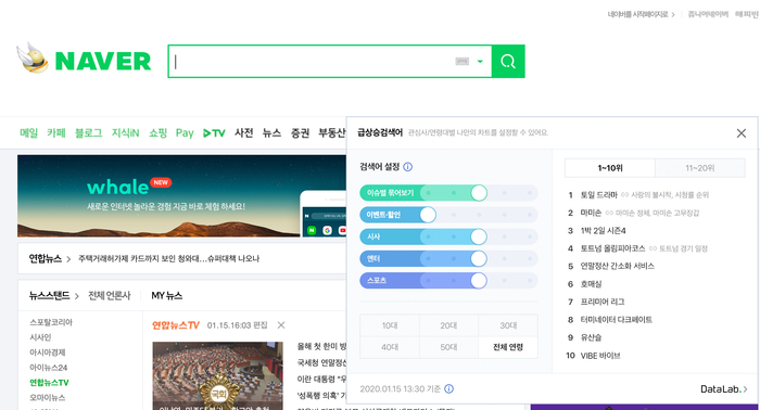 또, 각 주제에 포함되는 검색어의 차트 가중치를 설정하는 필터를 PC 메인 급상승검색어 서비스 영역에서도 조절할 수 있도록 했다.