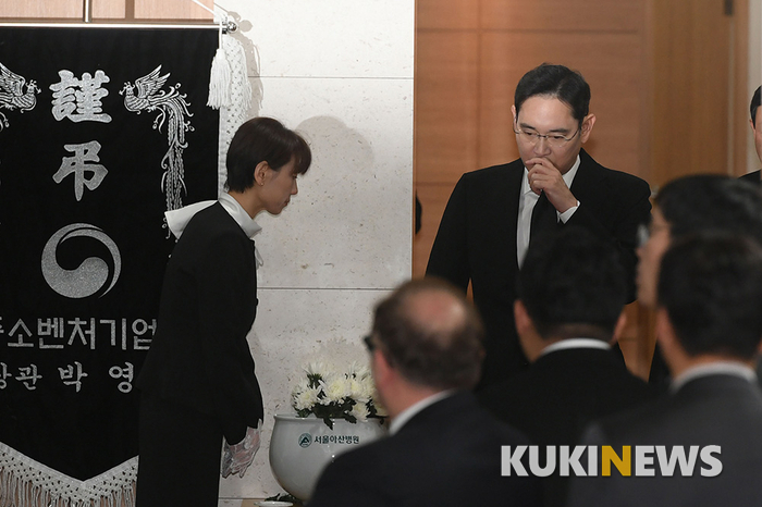 이재용 삼성전자 부회장이 20일 오전 서울 송파구 아산병원 장례식장에 마련된 고 신격호 롯데그룹 명예회장의 빈소를 찾아 조문을 마친 뒤 나서고 있다.