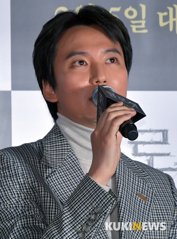 배우 김남길이 29일 오후 서울 CGV 용산에서 열린 영화 '클로젯' 언론시사회에서 취재진의 질문에 답하고 있다.