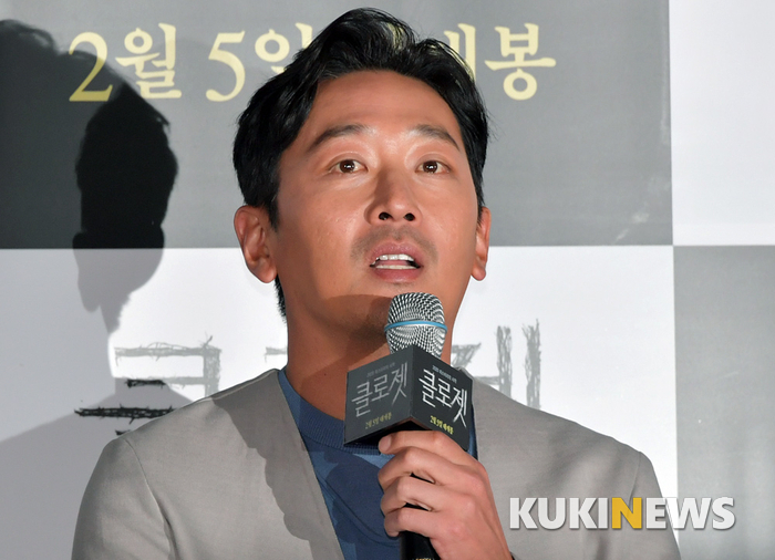배우 하정우가 29일 오후 서울 CGV 용산에서 열린 영화 '클로젯' 언론시사회에서 취재진의 질문에 답하고 있다.