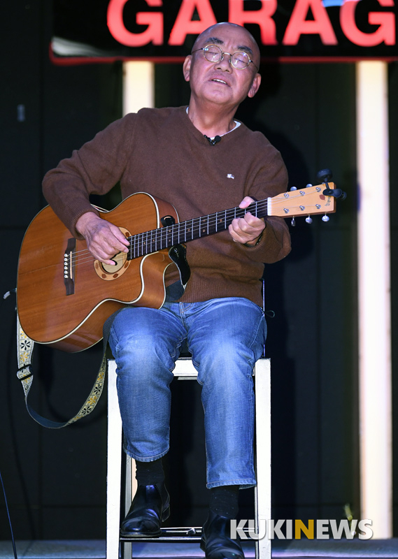 가수 이장희가 30일 오후 서울 종로구 복합문화공간 에무에서 열린 50주년 기념 콘서트 '나의 노래 나의 인생' 기자간담회에서 멋진 공연을 선보이고 있다.