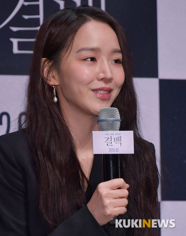 [쿠키뉴스] 박효상 기자 = 배우 신혜선이 6일 오전 서울 CGV 압구정에서 열린 영화 '결백' 제작보고회에서 인사하고 있다.