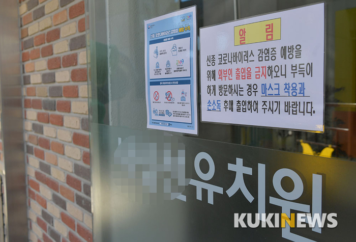 [쿠키뉴스] 박효상 기자 = 서울시교육청이 6일 서울 중랑·성북구 지역 유치원과 초·중·고교 등 총 42곳에 대해 오는 13일까지 긴급 휴업 명령을 내렸다. 사진은 신종코로나바이러스 감염증 안내문이 붙은 성북국의 한 유치원.