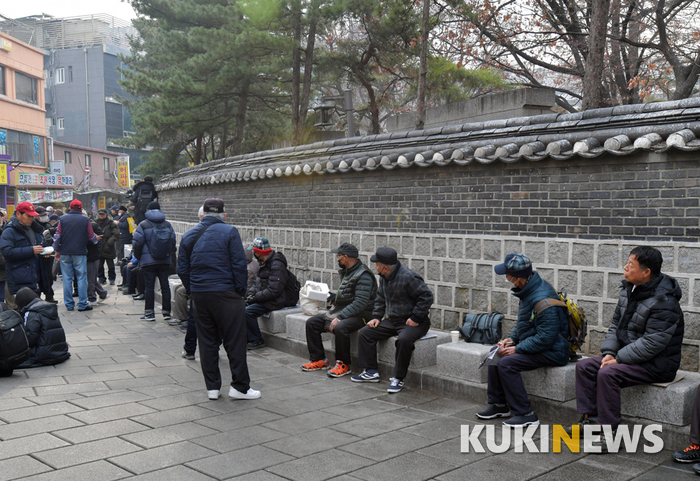 [쿠키뉴스] 박효상 기자 = 서울 종로구가 코로나19 확산 방지를 위해 탑골공원 운영을 중단한 가운데 어르신들이 공원 후문에 앉아있다.