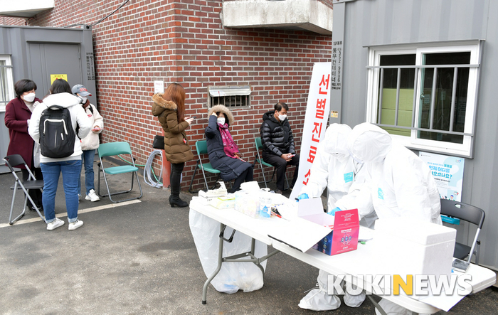 [쿠키뉴스] 박효상 기자 = 21일 오후 서울 종로구 종로보건소 선별진료소가 붐비고 있다.