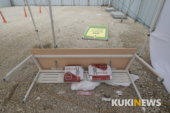 [쿠키뉴스] 박효상 기자 = 곳곳에 강풍특보가 내린 가운데 일시 운영 중단이 결정된 19일 서울 강서구 드라이브 스루 선별진료소가 텅 비어 있다.