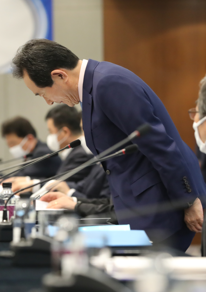 [쿠키뉴스] 박효상 기자 = 정세균 국무총리가 25일 서울 중구 은행회관에서 열린 '코로나19 위기 극복을 위한 전(全) 금융권 간담회'에 참석해 인사하고 있다. 이날 간담회에는 정 총리를 비롯해 윤석헌 금융감독원장, 은성수 금융위원장과 김태영 은행연합회장 등 전 금융권 협회 인사들이 참석했다.