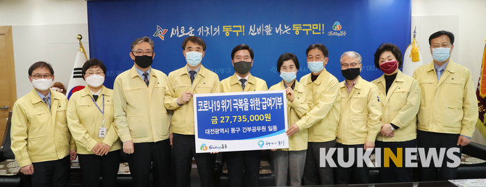 [대전=쿠키뉴스] 최문갑 기자 =대전 동구(구청장 황인호)가 코로나19 사태로 인한 구민들의 고통을 나누고 지역경제에 활력을 주고자 급여의 일정액을 기부하는 ‘아름다운 급여기부’ 릴레이 확산에 앞장서고 있다.