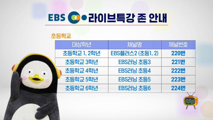 한편 EBS는 지난달 23일부터 자사 홈페이지 등 온라인을 통해 라이브 특강을 제공하기 시작했으며 전국 초중고 개학 연기에 따라 당초 지난 3일까지 편성 예정이던 라이브 특강을 17일까지 연장시킬 예정이다.