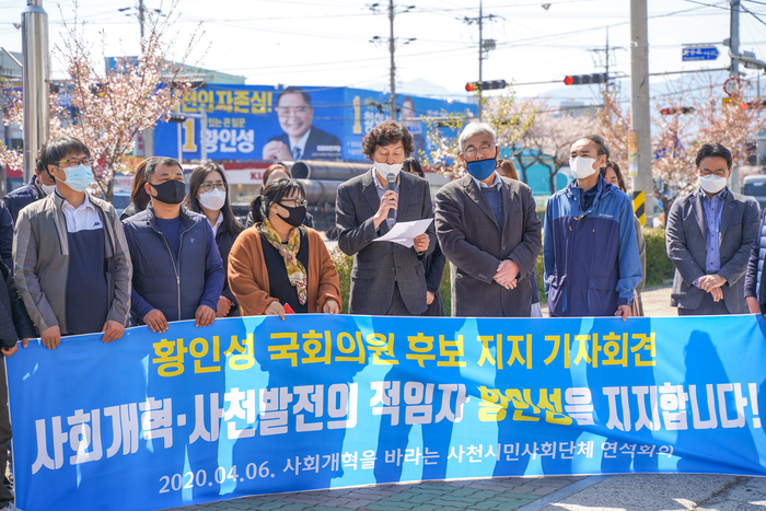 또한 사회개혁을 바라는 사천 시민사회단체 연석회의도 이날 오전 수석5리 사거리에서 기자회견을 갖고 "황인성 후보의 당선을 위해 노력할 것"이라며 황인성 후보 지지를 선언했다.