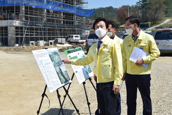 [진주=쿠키뉴스] 강연만 기자 = 조규일 진주시장이 6일 오전 지역농업 발전와 농업기술 보급의 중추적인 기관이 될 것으로 기대되는 진주시 농업기술센터 신축사업 현장을 방문해 공사 진행상황과 코로나19 확산 방지대책 등을 점검하고 관계자들을 격려했다.