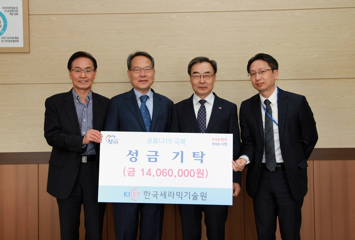 한국세라믹기술원 유광수 원장은 "코로나19 사태 대응책으로 강화된 사회적 거리두기를 2주간 연장해 사회 경제적으로 어려움을 호소하는 시민들이 늘어나고 있어 조금이라도 돕고 싶은 뜻에서 직원들과 함께 정성으로 성금을 마련하게 됐다"며 "하루 빨리 코로나19가 종식되길 바란다"고 밝혔다.