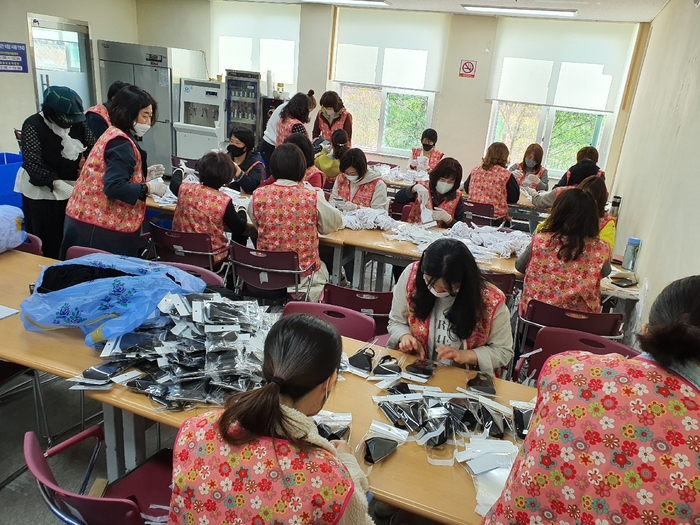 마스크와 교체형 필터 개별포장과 분류작업은 어린이집 연합회(회장 이연숙) 자원봉사자 50명이 참여해 방역 등 철저한 안전수칙을 이행한 가운데 이루어졌다.