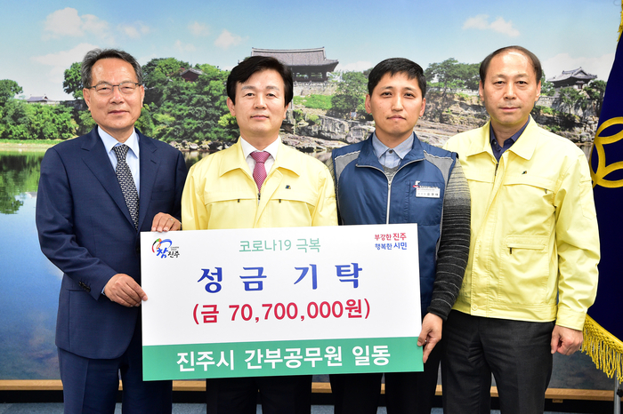 진주시 간부공무원 기부금액은 직급에 따라 5급 과장급은 60만원, 4급 국장급은 90만원, 3급 부시장은 120만원으로 조규일 시장의 1040만원을 포함해 총 7070만원이다.