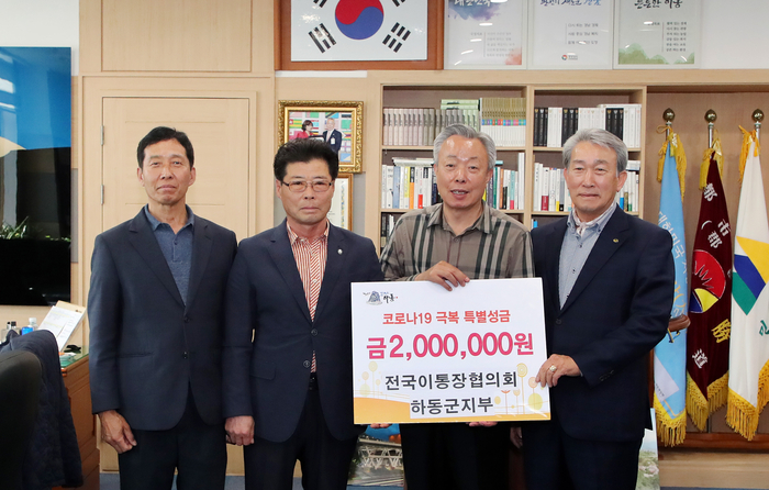 [하동=쿠키뉴스] 강연만 기자 = 경남 하동군(군수 윤상기)은 전국이통장협의회 하동군지회(회장 고윤석)가 코로나19 극복을 위한 특별성금 200만원을 기탁했다고 21일 밝혔다.