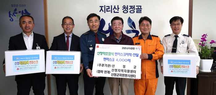 군은 이날 산청경찰서와 산청소방서, 사회복지시설 등 17개 기관·단체에 마스크를 전했다.