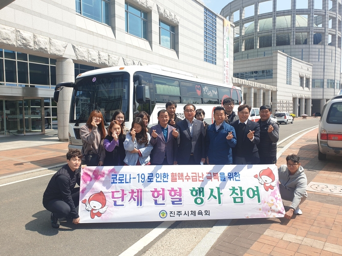 [진주=쿠키뉴스] 강연만 기자 = 경남 진주시체육회(회장 김택세)가 코로나19로 인한 혈액 수급난을 극복하기 위한 헌혈 행사에 동참했다.
