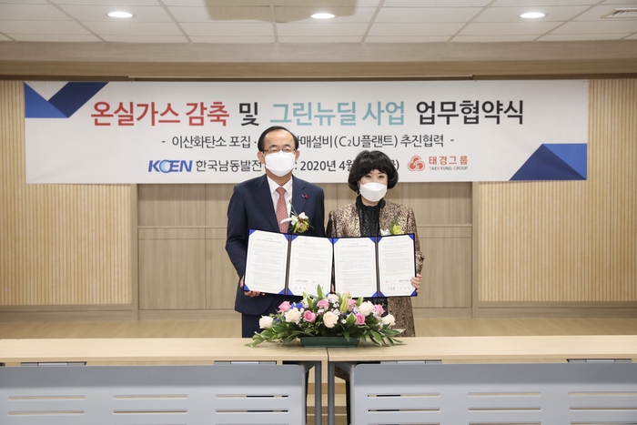 이번 협약으로 남동발전과 태경그룹은 발전소 배기가스를 활용한 12M급 C2U플랜트 사업의 성공적 추진과 온실가스 감축기술 개발 등 협력체계를 구축하기로 했다.