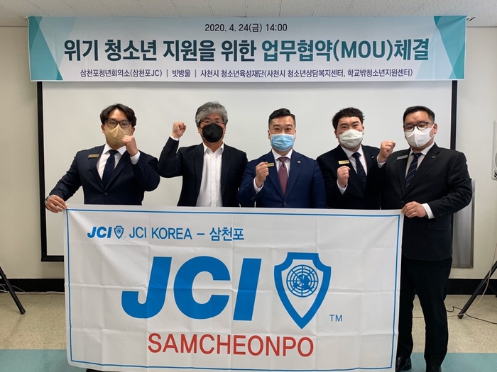 [사천=쿠키뉴스] 강연만 기자 = 삼천포청년회의소와 지역사회 봉사단체 빗방울이 지난 24일 위기 청소년 지원을 위한 업무협약을 체결했다.