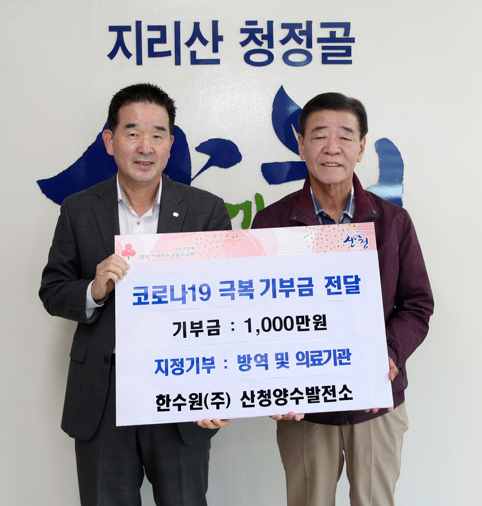 군 관계자는 "지난 3월에도 지역주민들에게 KF94마스크 1000개를 지원한데 이어 또 한번 나눔정신을 발휘해주신 산청양수발전소에게 감사하다"며 "전달받은 성금은 코로나19 극복에 쓰일 수 있도록 하겠다"고 말했다.