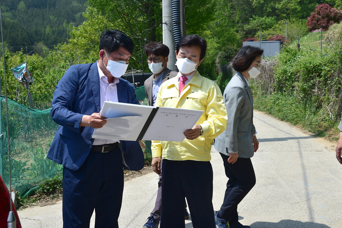 [진주=쿠키뉴스] 강연만 기자 = 조규일 진주시장이 석갑산과 숙호산 등산로변 공영주차장 조성 사업지를 방문해 현장을 점검했다.