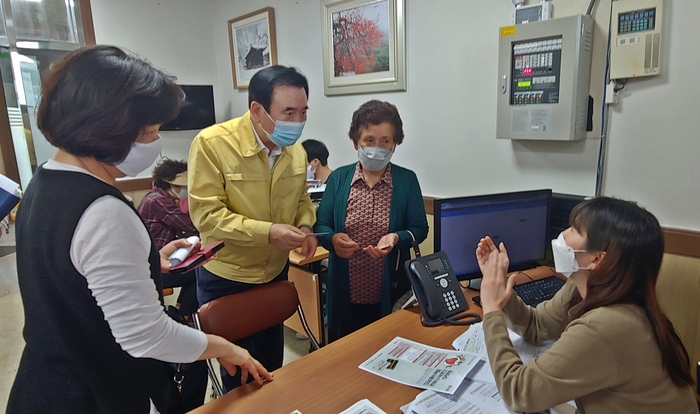 [함양=쿠키뉴스] 강연만 기자 = 서춘수 함양군수가 관내 읍·면 주민센터 등에 마련된 '경상남도 긴급재난지원금' 접수처를 방문해 현장을 점검했다.