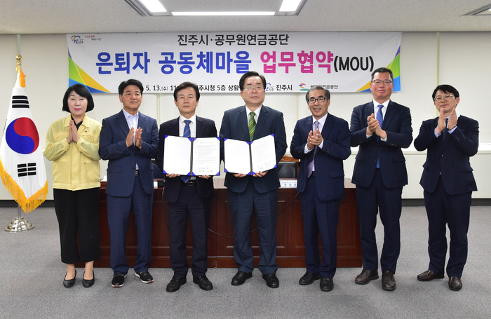 [진주=쿠키뉴스] 강연만 기자 = 경남 진주시(시장 조규일)가 13일 공무원연금공단과 은퇴자 공동체마을 조성 및 운영을 위한 업무 협약을 체결하고 협력 활동이 차질 없이 추진될 수 있도록 각종 정보 공유와 지원하기로 했다.