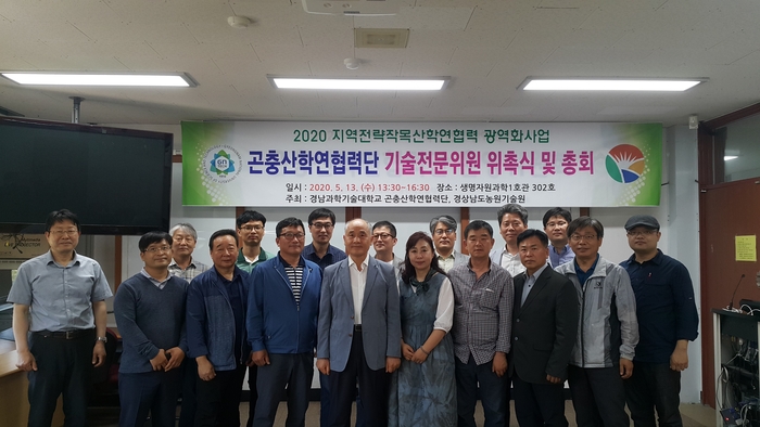 [진주=쿠키뉴스] 강연만 기자 = 경남과기대(총장 김남경) 곤충산학연협력단이 생명자원과학 1호관에서 2020년도 기술전문위원회 위촉식과 총회를 개최했다.