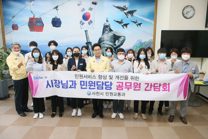 [사천=쿠키뉴스] 강연만 기자 = 경남 사천시(시장 송도근)가 시청 시민시장실에서 송도근 시장과 민원업무 담당공무원 13명이 참석한 가운데 간담회를 개최했다.