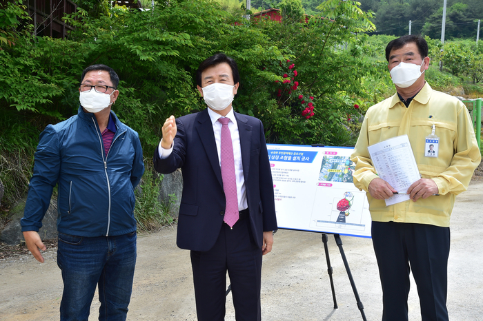 [진주=쿠키뉴스] 강연만 기자 = 조규일 진주시장이 25일 오전 수곡면의 특산물인 딸기 상징 조형물 설치 공사 예정지인 진주시 수곡면 동월마을에 방문해 추진상황을 점검했다.