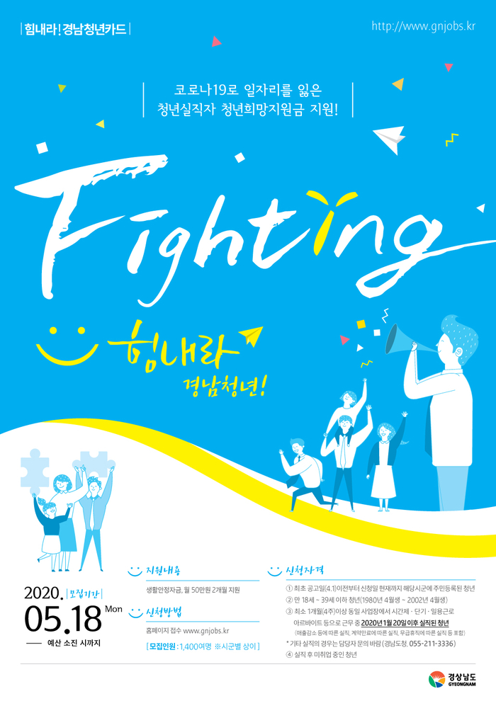 코로나19로 사업장의 매출감소 등 경영애로에 따른 비자발적 실직자뿐만 아니라 무급휴직의 장기화로 인한 자발적 퇴사자, 근로계약기간 만료에 따른 실직자도 지원해 실업급여를 받을 수 없는 사각지대에 놓인 청년들을 적극 지원할 계획이다.