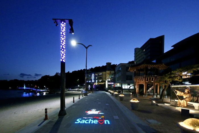사천시는 '남일대 명승지 정비사업'으로 약 2억원의 사업비를 투자해 해수욕장 백사장 주변에 주‧야간 관광객들의 편의증진과 안전사고 방지를 위해 경관조명 설치와 조경수 식재와 벽화를 정비했다.