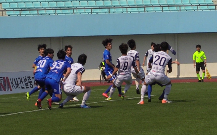 후반 12분께 한건용 선수의 패스에서 이어진 상대 골키퍼와의 1대1 대치상황에서 이윤성 선수가 침착하게 첫 번째 득점을 했다. 이후 치열한 공방전을 벌이던 중 경기 후반 37분 박광일 선수의 프리킥에서 이어진 조성욱 선수의 헤딩골로 동점을 기록하며 경기를 마무리했다.