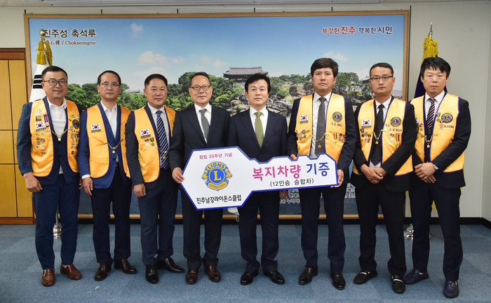 [진주=쿠키뉴스] 강연만 기자 = 진주 남강라이온스클럽(회장 배재철)이 12인승 승합차량 1대(2600만원상당)를 복지시설에 기탁했다.