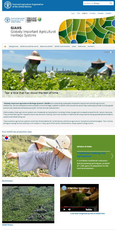 [하동=쿠키뉴스] 강연만 기자 = 세계중요농업유산 하동녹차의 주요 사진과 영상물이 UN FAO(국제연합식량농업기구) 홈페이지에 게시돼 1200년 역사와 전통을 자랑하는 하동 야생차를 전 세계인에게 알리는 계기가 됐다.