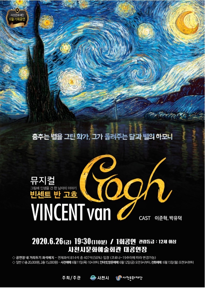 [사천=쿠키뉴스] 강연만 기자 = 사천문화재단이 오는 26일 저녁 7시 30분부터 사천시문화예술회관 대공연장에서 뮤지컬 '빈센트 반 고흐' 공연을 연다.