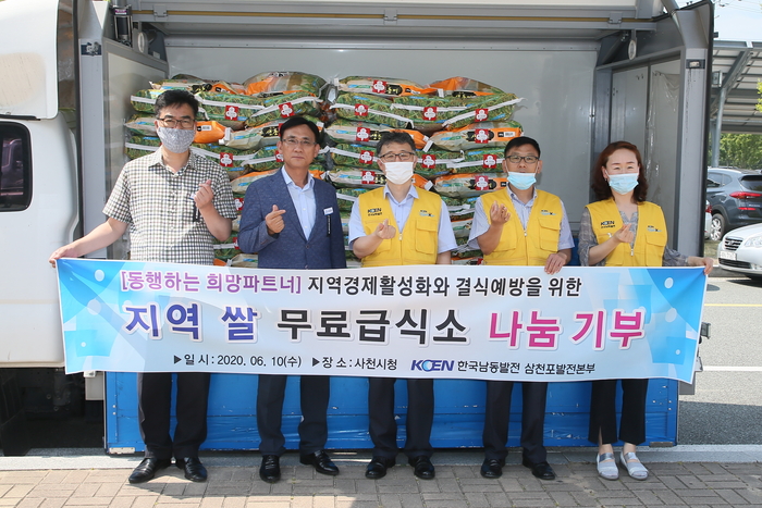 [사천=쿠키뉴스] 강연만 기자 = 한국남동발전(주) 삼천포발전본부(본부장 임다두)가 10일 사천시청에서 관내 저소득층을 위한 무료급식소를 대상으로 백미(20kg) 127포(600만원 상당)를 기탁했다.