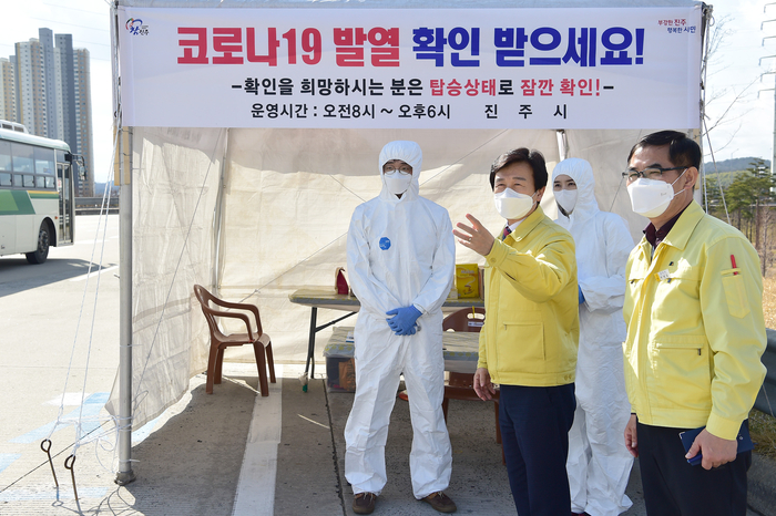 시는 지난 2월 21일 관내에서 코로나19 확진자 2명의 발생과 동시에 더 이상의 지역 확산을 차단하기 위해 고속터미널, 시외버스터미널, 진주역 등 대중교통 시설을 중심으로 고속도로 IC 3개소와 농산물도매센터 등에서 발열체크 부스를 설치하고 열화상 카메라 3대를 투입해 발열체크를 실시해왔다.