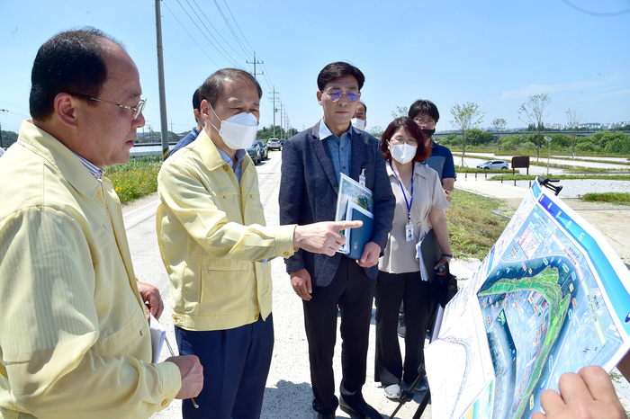 최근 코로나 19의 확산으로 근거리 가족 중심의 공원으로 인파가 몰리면서 친수 생태공간 내 부족한 편의시설과 시설관리 부족 등으로 인한 이용 불편으로 민원이 증가 했다. 이에 따라 정준석 부시장이 현장을 방문 각 시설담당 부서의 현재 관리방식과 향후 시설 관리 계획을 보고 받고 점검을 실시했다.