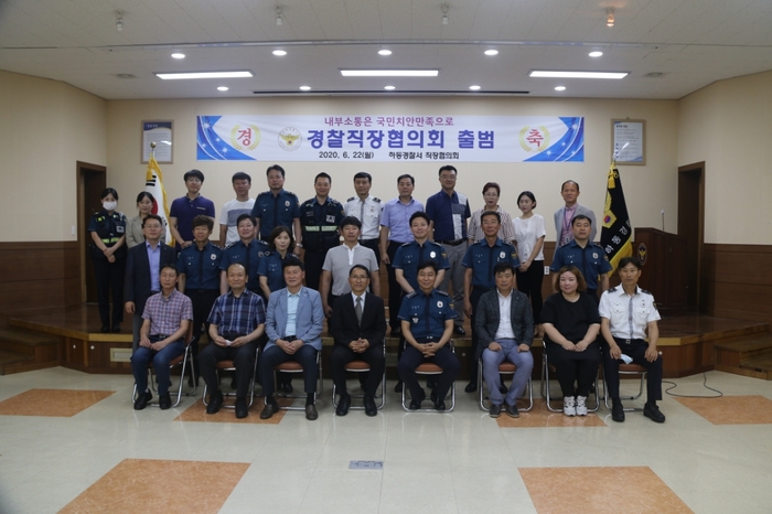 [하동=쿠키뉴스] 강연만 기자 = 경남 하동경찰서(총경 진훈현) 직장협의회(회장 김영배)가 지난 22일 진훈현 총경을 비롯한 각 과장과 회원 40여명이 참석한 가운데 직장협의회 창립총회와 발대식을 개최했다.