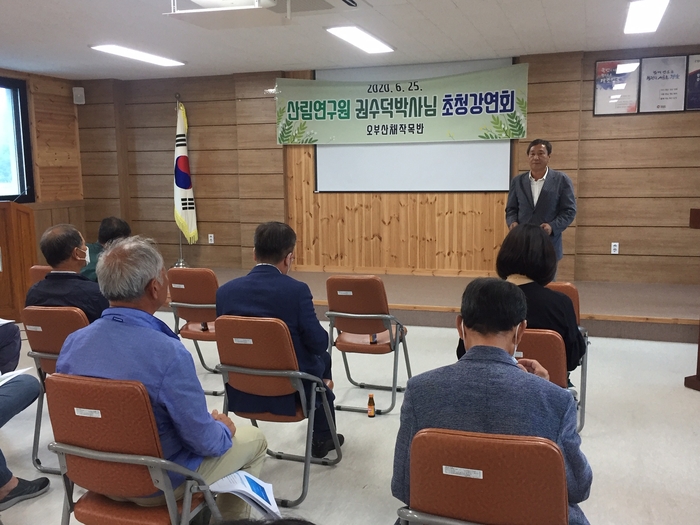 오부면사무소에서 2시간 동안 진행된 이번 교육은 오부산채작목반원은 물론 산림작물에 관심이 많은 주민 30여명이 참석했다.