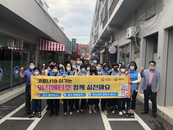 [사천=쿠키뉴스] 강연만 기자 = 경남 사천시(시장 송도근)가 지난 24일 코로나19 예방과 확산 방지를 위해 한국외식업중앙회 경남지회 사천시지부, 소비자식품위생감시원, 관련 공무원 등 30여 명이 참여한 가운데 '음식문화개선 캠페인'을 전개했다.