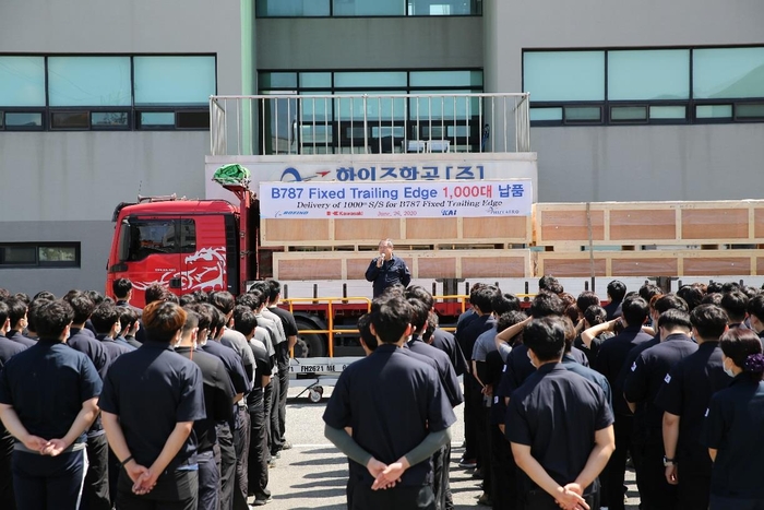가운데 B787 FTE(Fixed Trailing Edge) Sec.15 1000 호기 출하 기념행사를 개최했다.