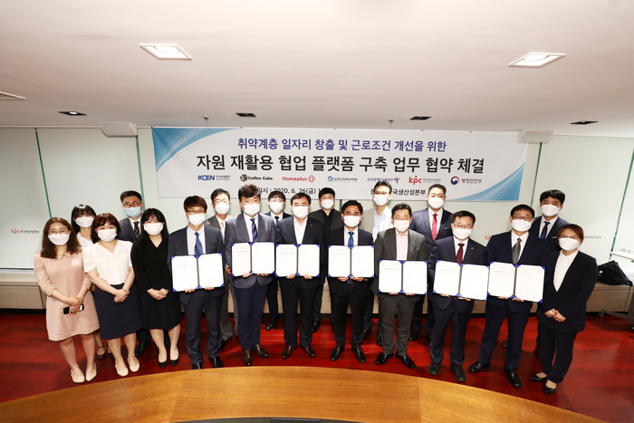 [잔주=쿠키뉴스] 강연만 기자 = '취약계층 일자리 창출'과 '자원 재활용'이라는 사회적 가치 실현을 위해 중앙행정기관과 공공기관, 그리고 민간기업이 손을 맞잡았다.