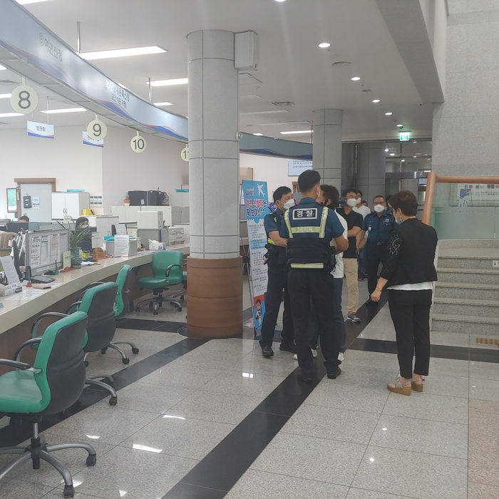 특히 경찰서와 긴밀한 협조체계 구축해 전한 민원환경 조성을 위해 치한 비상벨을 통해 사건발생 시 경찰서 출동여부를 확인하는데 중점을 두었으며 5분 이내에 도착한 경찰관이 민원인을 진정시켜 마무리 하는 것으로 모의훈련을 마무리했다.