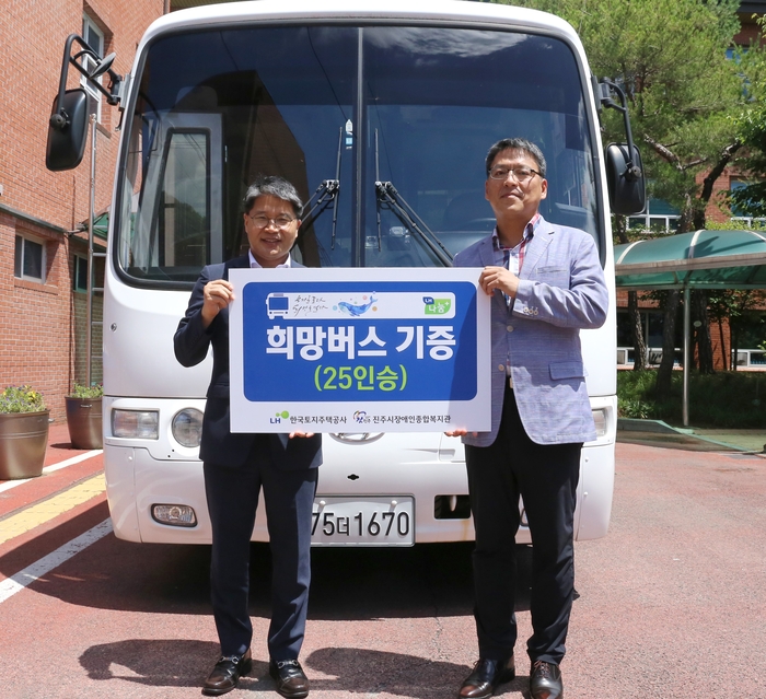 이번 기증은 기존 셔틀버스의 노후화로 어려움을 겪고 있던 진주시장애인종합복지관에서 LH로 지원을 요청함에 따라 이뤄졌으며 장애인 편의를 위해 운전석 차단막을 비롯해 TV와 앰프, 무선마이크, 공기청정기 등을 새로 설치하고 디자인 작업을 통해 새롭게 외장을 꾸몄다.